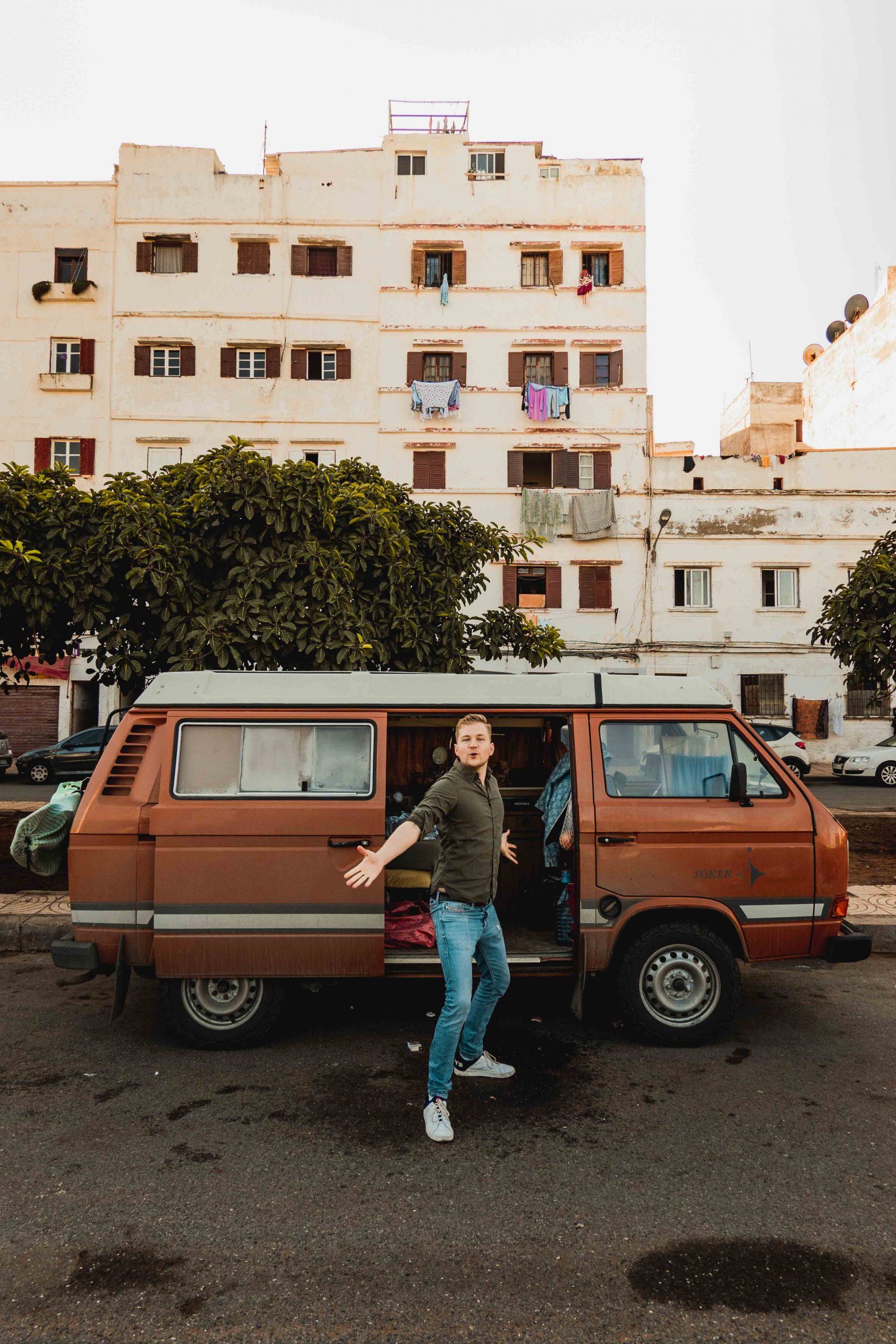 I have never been to Africa before but I’ve heard that Morocco is the “Switzerland” of it. What this means according to the stories I’ve heard is good roads, more money than most of the African countries and some kind of westernisation. Even with this “The Switzerland of Africa” status, I felt at the ferry port already that Morocco is not like a Switzerland at all. I mean look at these cars. I parked my van at the lower deck of the Moroccan ferry. The doors slowly started to close. I guess now, there is now way back. Sure, I dramatize a little but also know myself well. I don’t do things by halves. So I wont turn back unless something big stops me. The ferry drove 1,5 hours. My pass was controlled on board. In Tanger I left the ferry. The roads were really good. People even spoke good English. I straight drove to a spot I checked out in the internet before. People said to me that wild camping is illegal and dangerous in Morocco. I decided to try it first, instead of believing it straight. Come on, “The Switzerland of Africa”. How much Switzerland can it be when wild camping is dangerous? During my 1 hour ride to the night spot at the beach I felt like I traveled back in time. The average car on Moroccan streets was at least 10-20 years older than the ones in Spain. All cars were full of scratches and dents and on top of all that the traffic signs were in outlandish Arabic or French. Somehow cool, so different. I could feel that my car was a little less powerful because of my heavy new off road tires. I was unsure if the changes of my car were worth this power losses.