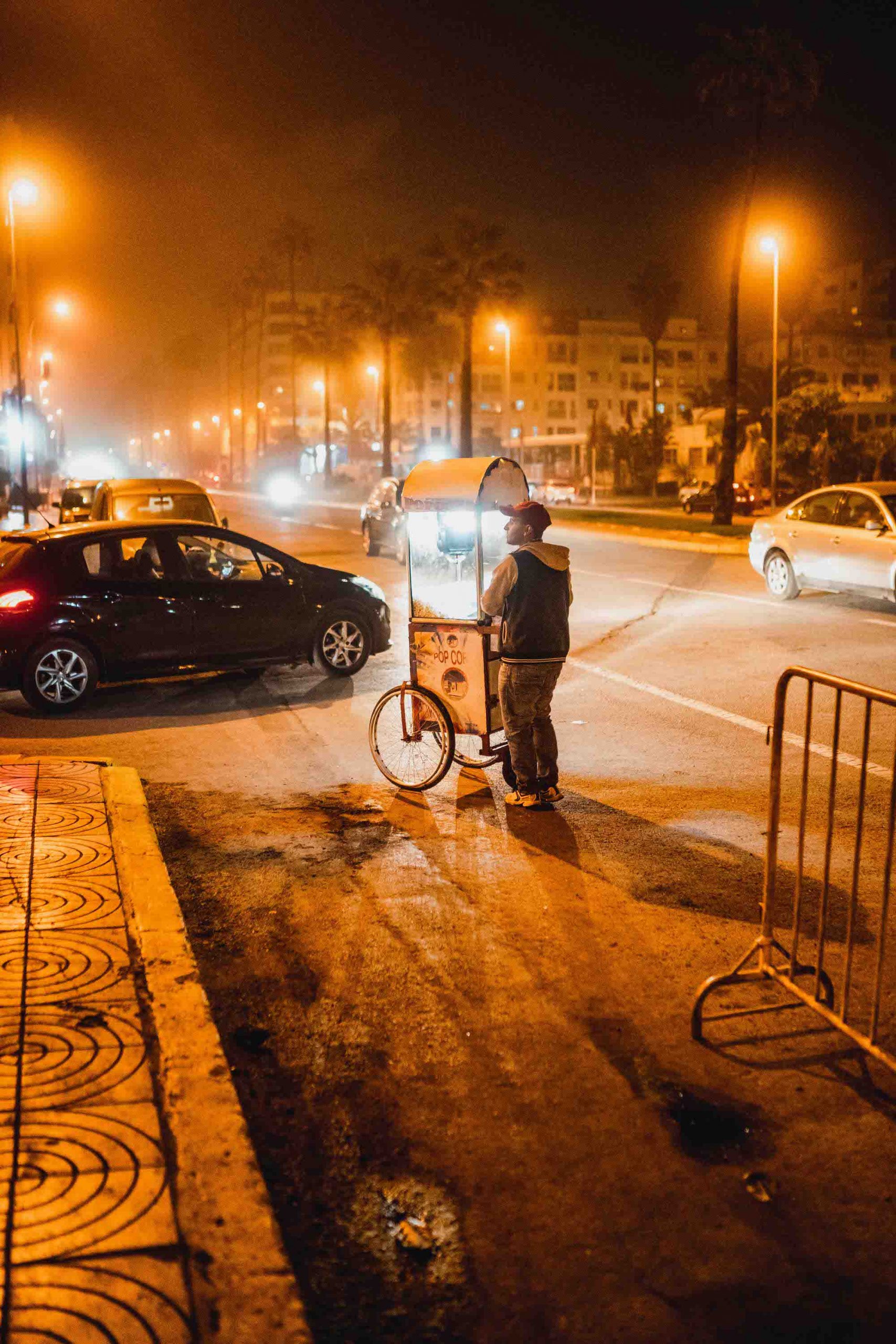 I though I know how it’s gonna be like in Morocco but actually I didn’t know shit. They transport things with bloody donkeys. I mean donkeys, not even horses – DONKEYS!! The traffic was nothing but horrible. Everyone driving how he felt like and the police was trying to get the whole situation under control by blowing randomly into a whistle. Cars, motorbikes, scooters, donkeys, police officers, all in one round about. Rico, also shocked, was arguing that he feels unsafe as the co driver. So he decided to warn me from time to time. This made me break hard a lot and didn’t help at all. After finding a at the side of the road parking in Tanger a stranger popped up at the van.
