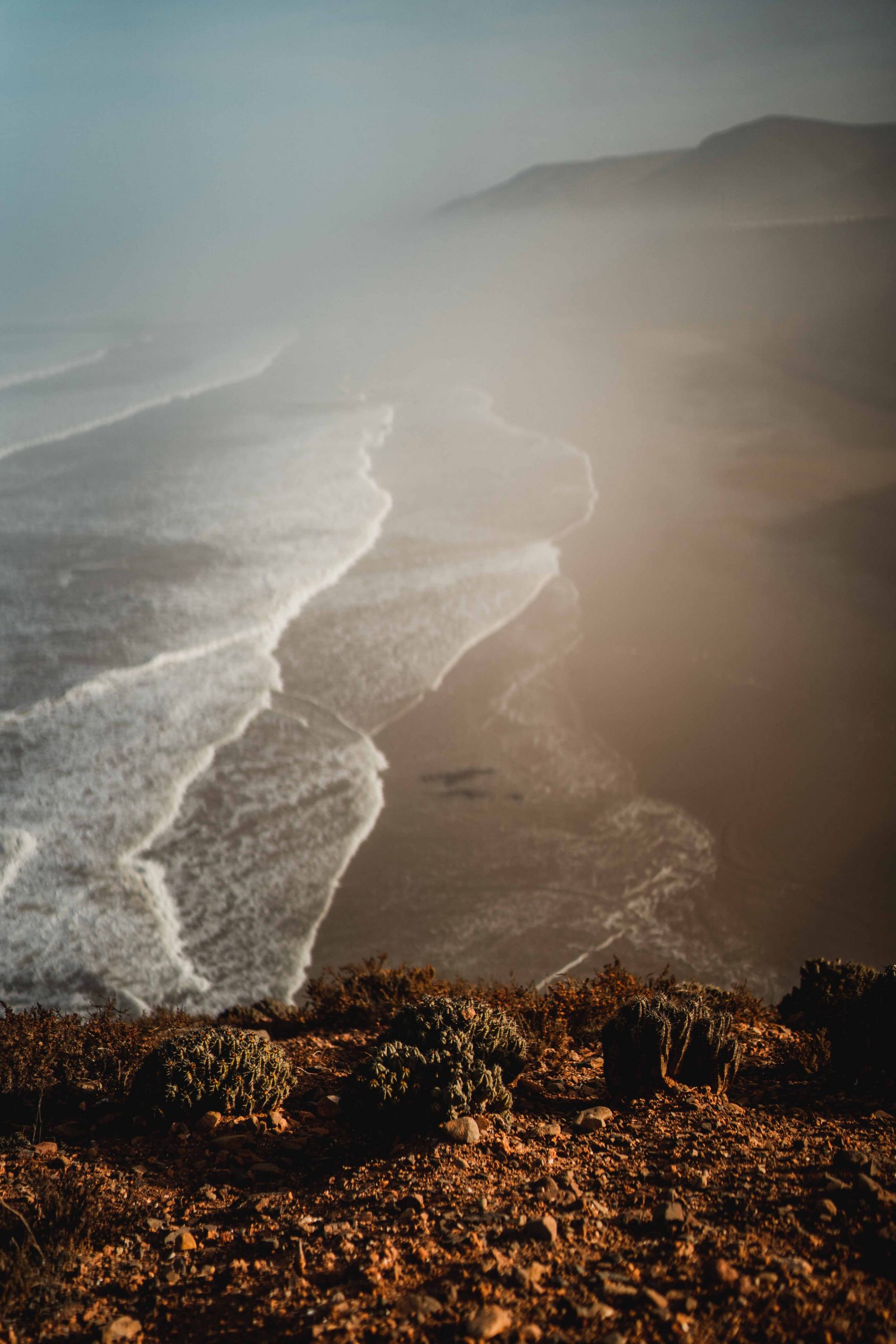 Close before I arrived at the beach spot I had to drive over a small hill to get on the road which leads to the Atlantic. When I saw the Atlantic I became instantly happy. The colours. So perfect. A bright blue, with white waves and orange cliffs. From the hill, during sun set, I saw people riding Dromedaries at the beach. I’m roughly two hours away from Spain and the world is so unreal already. I guess my first day couldn’t have been more perfect than it was. I cooked and fall asleep. What a crazy new World!